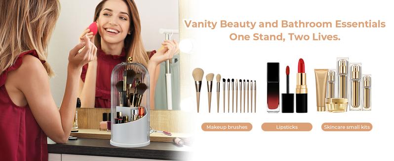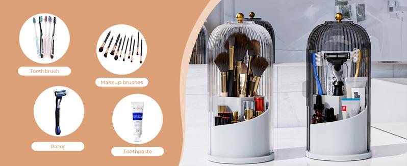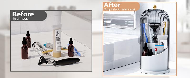 Designed with a 180° sliding cover to protect items from dust and water splashes. The interior rotates 360°, allowing easy access from any angle while keeping daily essentials within reach.