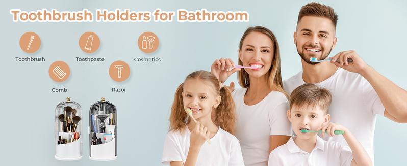 The enclosed structure helps keep toothbrushes clean and dry, making it suitable for family bathroom use on sinks, countertops, or near mirrors.