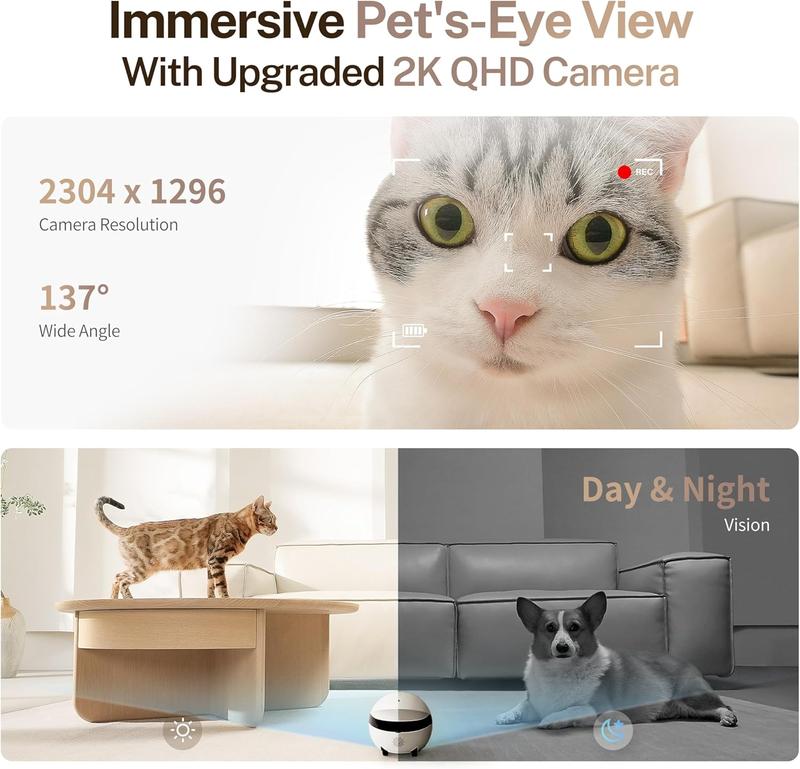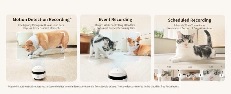 The ROLA Mini camera robot offers remote monitoring with wheels. Its 2K camera provides clear, stunning clarity. Capture every detail with precision. The self-righting body stays upright, even when nudged by playful paws. Perfect for pets and home security.