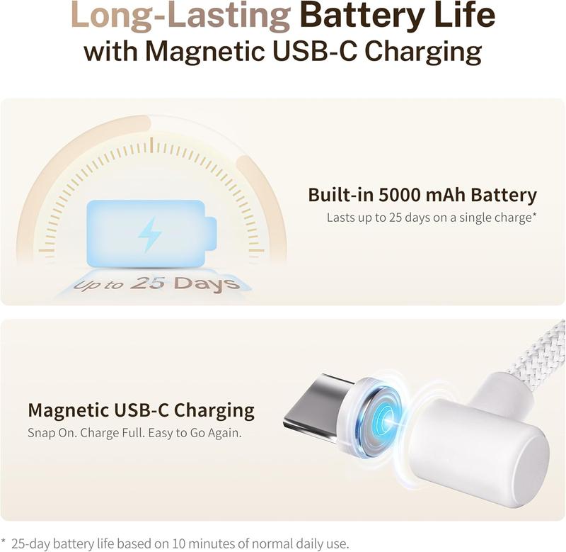 A 32 GB memory card comes with the camera. Capture every precious second. The 5000 mAh battery ensures extended playtime. Magnetic USB-C charging allows easy recharging. No more low-battery worries.