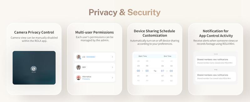 Press the call button on ROLA Mini to connect via the ROLA App. Chat with loved ones anytime, anywhere. The built-in mic and speaker ensure clear communication. Four infrared LEDs display clear images in low light.