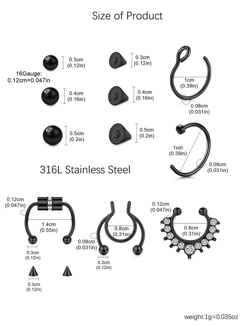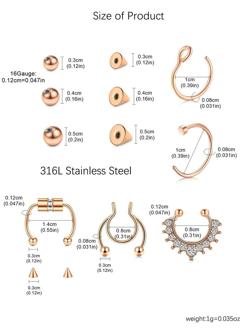 【Versatile Application】: These accessories can be used as fake eyebrow rings, lip labret studs, or on other parts of the face, providing flexibility in faux body modification.