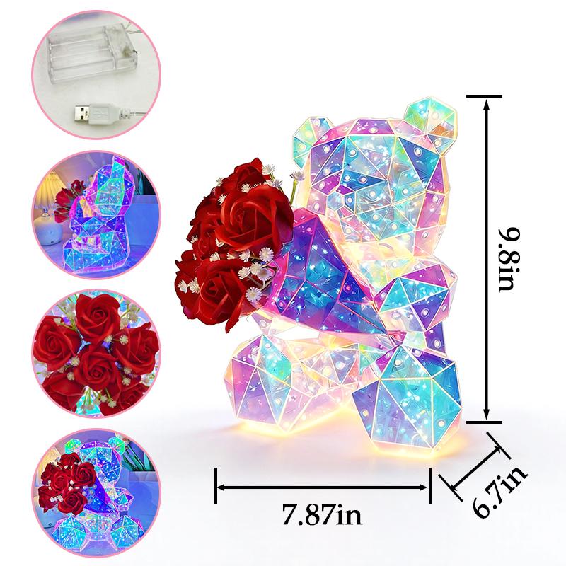 - Fairy Tale Glow Lamp: This LED rose-holding bear desktop light-up ornament is perfect for holiday gifts, birthday parties, weddings, engagements, anniversaries, and Christmas. It adds a magical touch to any occasion. π